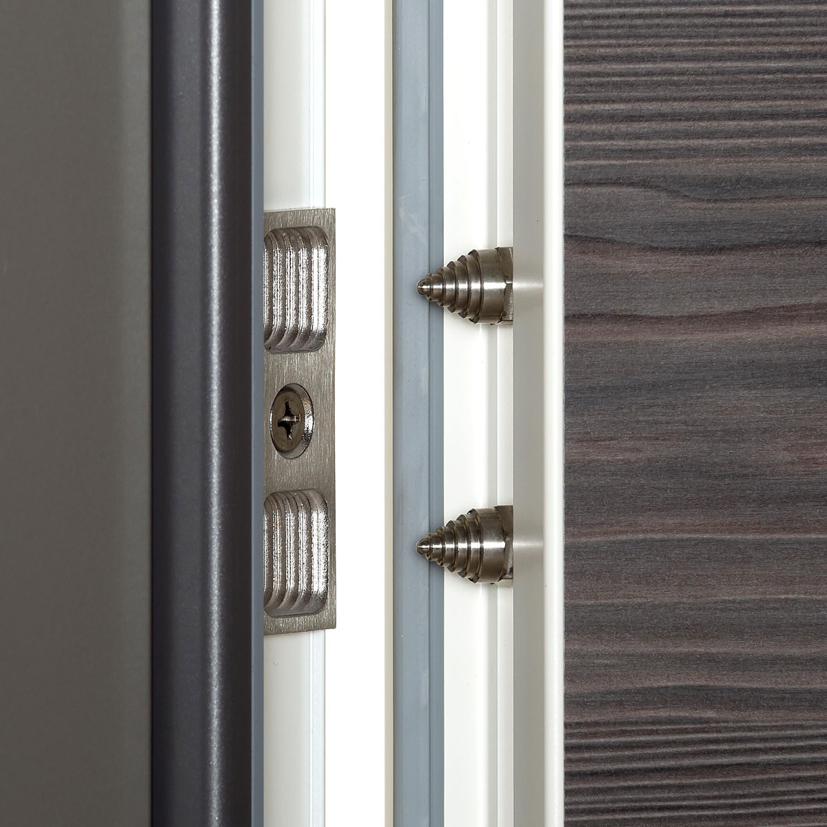 Die ins Rollenband optional integrierten Aushebesicherungen gewähren Ihnen höchste Sicherheit. Stabile Edelstahl-Bolzen verzahnen sich in der Platte und greifen tief ins Profil, ähnlich wie bei einem Tresor. Bei RC 2 erhalten Sie 4 Bolzen, bei RC 3 sogar 6 Bolzen.