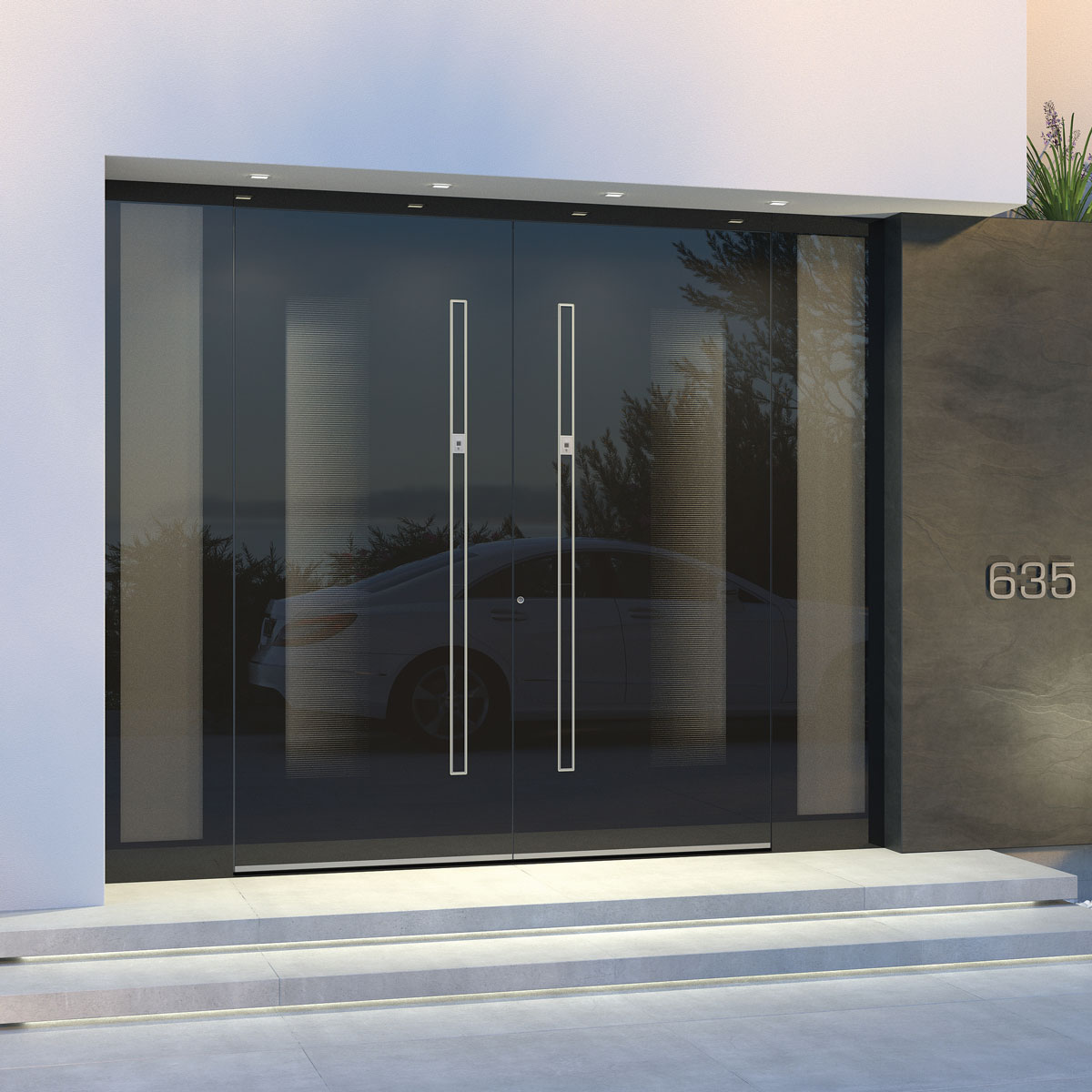 Pirnar Ultimum Pure mit OneTouch System ist der zur Zeit weltweit persönlichste Eingang. Die Eingänge mit einer vollautomatisch aus- und einfahrenden OneTouch-Griffstange und angepasster Beleuchtung, die den Besitzer mittels eines Fingerscanners erkennen, sind eine Weltneuheit für mehr Komfort.