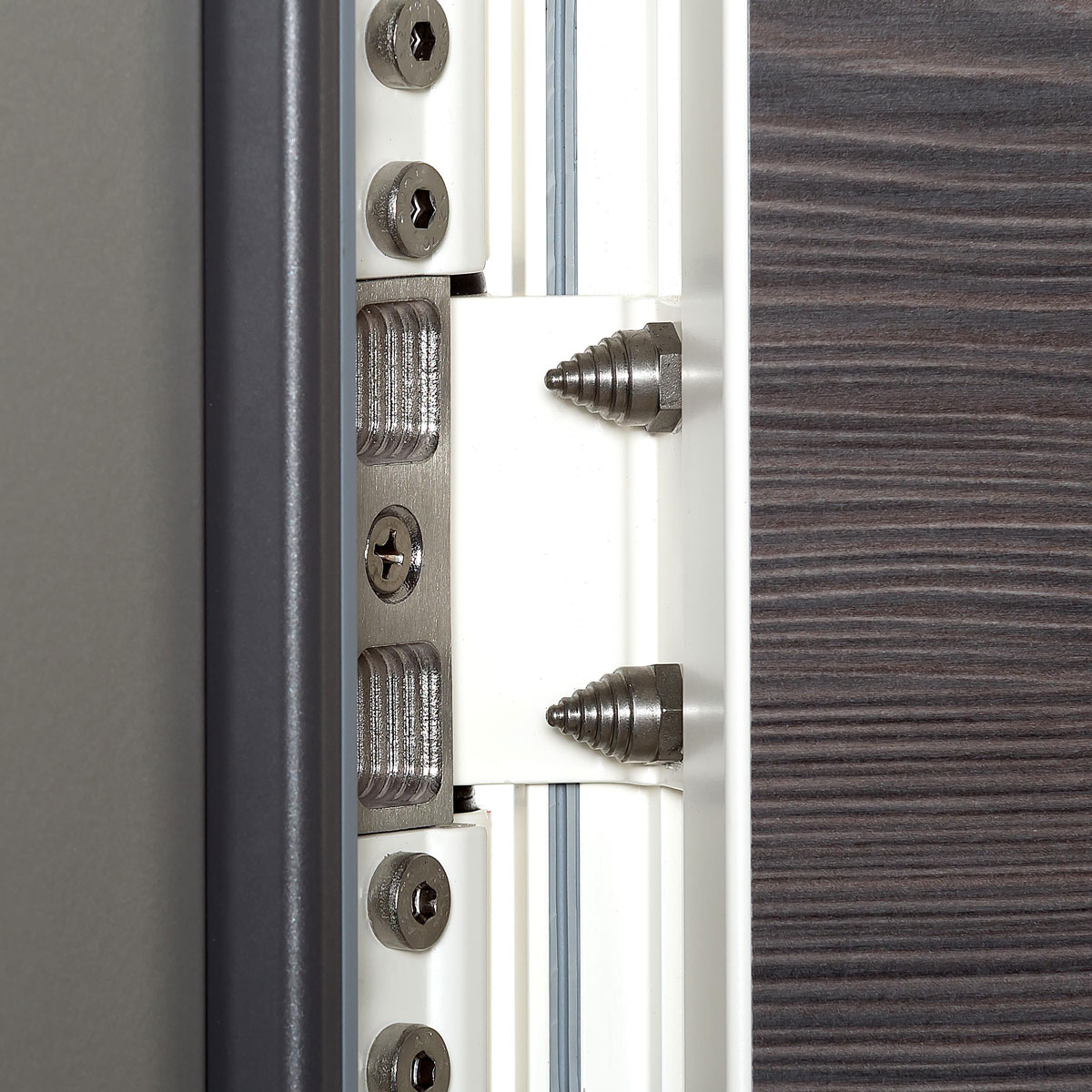 Die ins Rollenband optional integrierten Aushebesicherungen gewähren Ihnen höchste Sicherheit. Stabile Edelstahl-Bolzen verzahnen sich in der Platte und greifen tief ins Profil, ähnlich wie bei einem Tresor. Bei RC 2 erhalten Sie 4 Bolzen, bei RC 3 sogar 6 Bolzen.